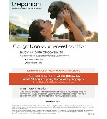 Big Country Aussies is a small ranch located in Coleman Tx. We strive to raise Aussies that are healthy and well socialized with exposure to farm life and kids. Our puppies are raised at home with daily interaction just like being part of the family. If you are an energetic dog loving person Australian Shepherd is the dog for you. Come c